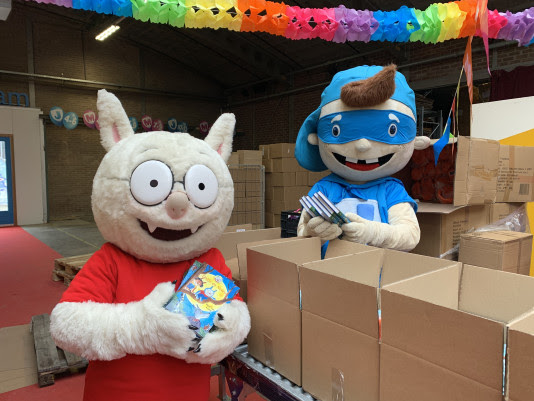 In de feestelijke inpakloods in de Van Nelle Fabriek pakten Dolfje Weerwolfje en Super Job de verjaardagsboxen in met de speciale cadeautjes. Jarige kinderen in de leeftijd van 7-9 kunnen vanaf september mogelijk verrast worden met een Dolfje Weerwolfje boek en de leesquiz. Met nadruk op mogelijk, want de inhoud van iedere verjaardagsbox is anders om de anonimiteit van zowel de ouders als de kinderen zoveel mogelijk te waarborgen. “Dolfje Weerwolfje vindt, net als ik, dat elk kind een cadeautje moet kunnen krijgen voor zijn verjaardag en dat je dit echt moet kunnen vieren. Dolfje en ik dragen deze actie dan ook een warm hart toe,” aldus auteur Paul van Loon.