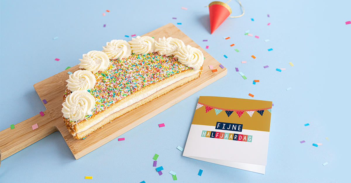Wie afgelopen maart jarig was, moest zijn of haar verjaardag anders vieren dan normaal. Bijzonder dus om zes maanden later stil te staan bij de ‘halve verjaardag’: 4,5 jaar, 30,5 jaar en 65,5 jaar zijn immers óók mooie leeftijden. Met het sturen van een taart en kaart uit de speciale halfjaardagcollectie steun je – net als met de ‘gewone’ verjaardagskaarten uit de collectie – direct Stichting Jarige Job.